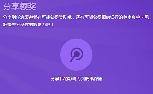 当然最后别忘了分享你的三周年信息,点击“分享我的影响力到腾讯微博”就有可能获得招商银行的尊贵真金卡!