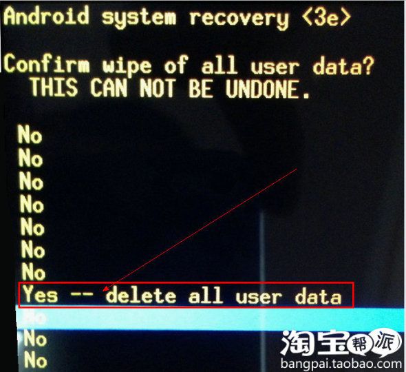 Yes-----delete all user data 并按下“音量 键” 进行确认