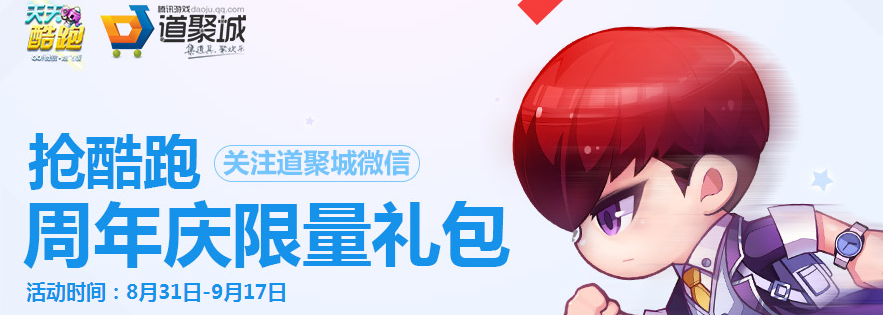 道聚城抢天天酷跑周年庆限量礼包活动开始了,8月31日期,抢购天天酷跑周年庆限量礼包,礼包包含白虎大礼包、神龙大礼包、萌装大礼包、超能大礼包、周年庆终极大礼包,下面东坡小编就给大家详细介绍活动情况吧。