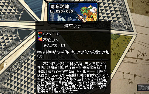 遗忘之地进入条件介绍,每消耗100点疲劳值,玩家可以获得一次遗忘之地入场次数,每天最多3次(?待确定以国服正式服为准),该副本为单人副本,等级Lv25以上即可挑战。
