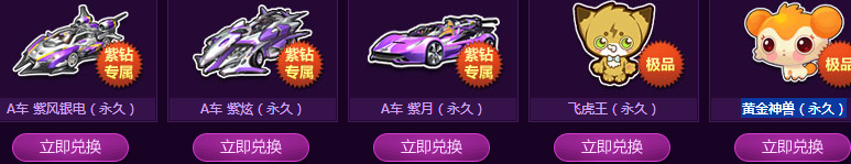 A车 紫风银电(永久)、A车 紫炫(永久)、A车 紫月(永久)、飞虎王(永久)、黄金神兽(永久)