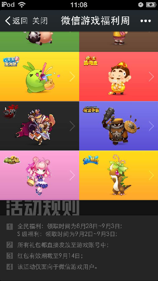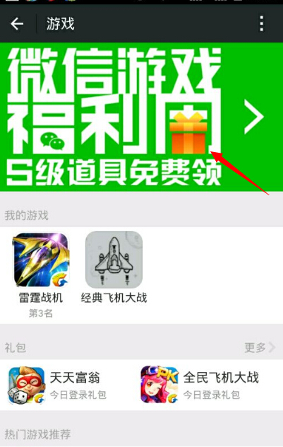 2、进入之后,会在上方看见浮动广告,玩家需要点击【微信游戏福利周】这个绿色界面进入。