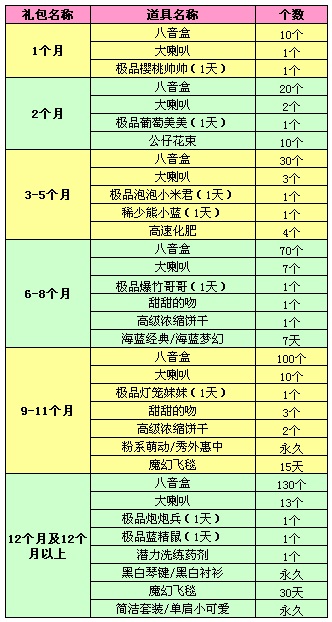 在开通12个月及以上的礼包中,除了装有130个八音盒等好礼外,还有奢华的魔幻飞毯、两款永久期限的服装、两款极品宠物蛋等好礼。