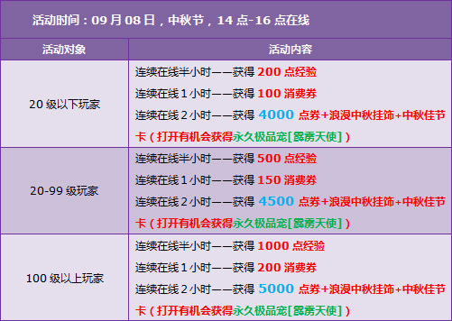qq飞车喜迎中秋节,在9月的第一个周末为大家送上了丰厚的奖励,9月6日-9月8日活动期间,11000点券+1个【中秋佳节卡】,浪漫中秋挂饰,浪漫中秋前景,还有机会获得永久极品宠 - 霹雳天使,9月8号还有8倍经验,车队积分,下面东坡小编就为大家详细介绍活动情况吧。