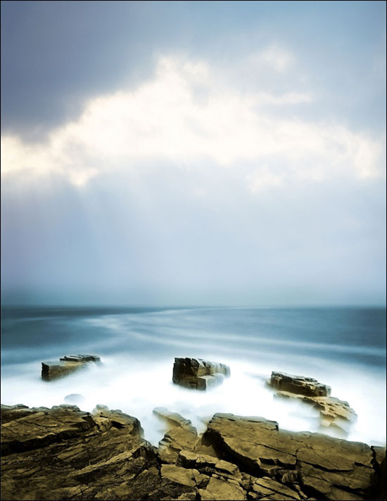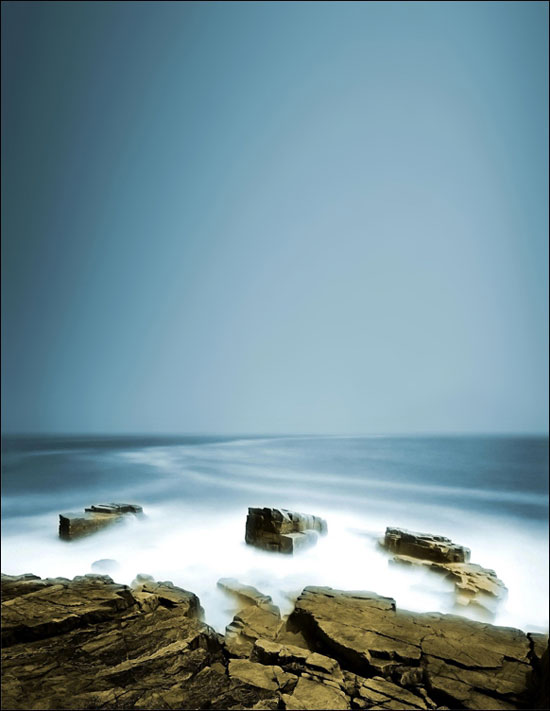 这时候我们加入天空图片,把下面那一截图按照上面一样的方法拉到水和天空的交界处,然后在添加图层蒙版,在上面添加一个渐变,让它有一个从实到虚的效果就可以了。