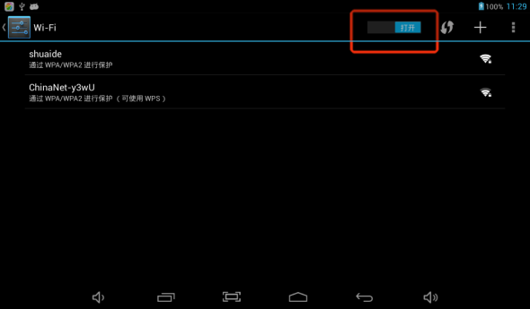 滑动上图红框中 打开WiFi , 系统自动搜索附近的WiFi热点,