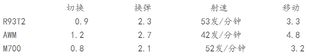 从速度上来说,R93T2尽管不及M700,但是却完爆AWM,不论从任何方面来说。由于R93T2有着足以一枪击毙对手的能力,所以弥补了他速度上的问题。快速的换弹也当你不用太担心子弹少的问题。