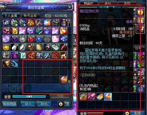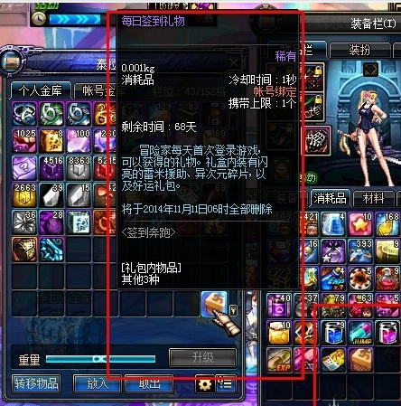 方法很简单,上线会直接送你一个每日签到礼物,不要打开,她是帐号绑定的,可以放进仓库。