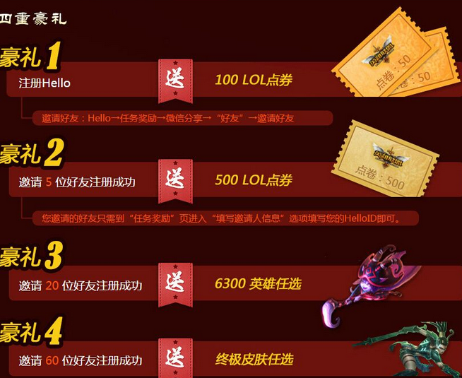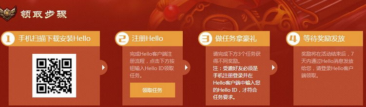 5、如何领取奖励:登录Hello→消息→Hello通知;