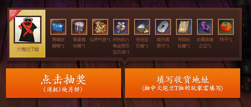 5、抽到火炮兰的T恤的玩家,请在活动页面填写收货地址,工作人员会将奖品寄送至您填写的地址。