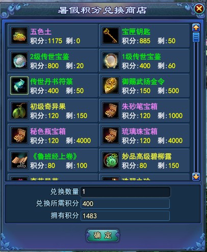 《倩女幽魂2》2014暑假活动-暑假积分兑换商店