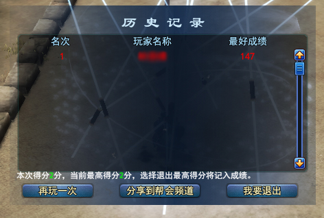 [分享到帮会频道]可将自己的分数在帮会频道炫耀。
