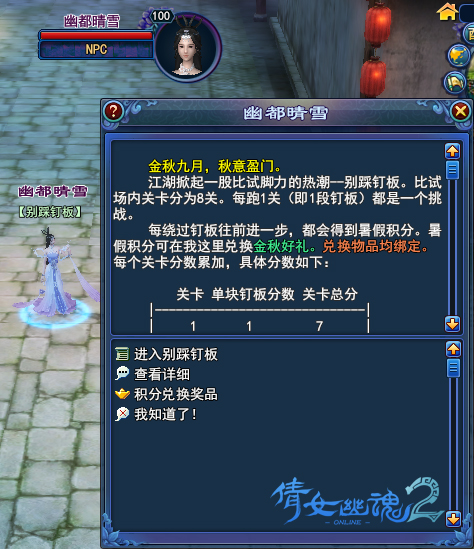 《倩女幽魂2》2014暑假活动-关卡分数表