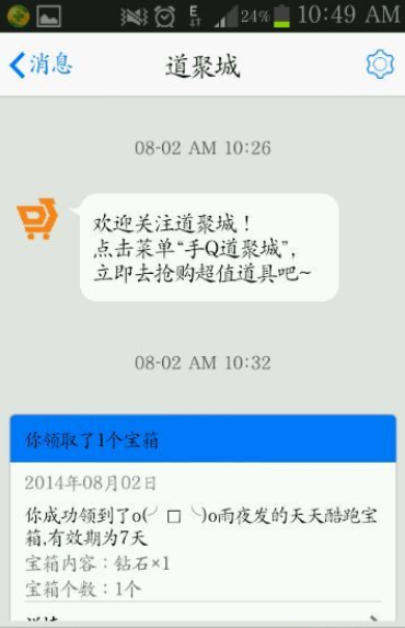 1、到手机qq游戏中点击城市酷跑赛就可以领取天天酷跑宝箱了