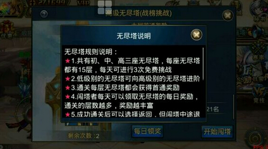 本次为玩家们卡BUG的方法是卡宝箱和金币袋,首先要连点一键闯塔,之后再点闯塔,系统在卡的时候玩家们就会获得金币和宝箱奖励,但是切记一定要继续保留一键闯塔,闯塔层不会跳到一键闯塔之后的层数,如果玩家们在第一层卡BUG成功了,就会拿到一键闯塔的奖励,使用方法一次类推,到了70层玩家们就可以花70金币,拿到90层的所有奖励。