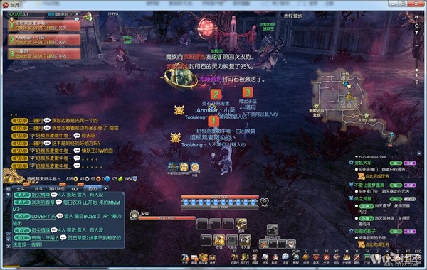 太尚门,老将是最容易打掉的 。封印石到了1滴血,但是没有显示激活。可以看到队友都到了赤脚营地、(这个营地最难弄)