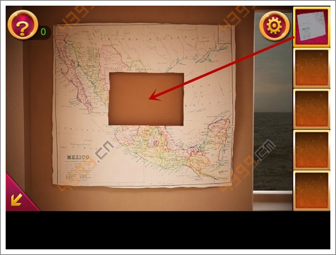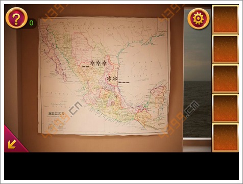3.点击左边墙上的地图,将地图还原后,可以看到地图上的密码(_ _*****_ _ _),记住。