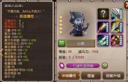 从小黑的属性装备可以看出,小黑虽然脆皮但物理输出绝对强势,在单点boss的时候绝对不比任何英雄差,而且小黑的吸血和闪避都非常出色从这点看来,在面对物理对手的时候小黑绝对是不二的选择。