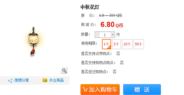 在商城中购买“中秋花灯”,直接进入物品栏中打开即可获得精美奖励!