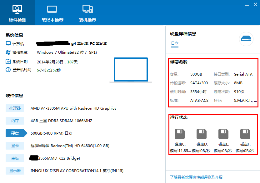 驱动人生硬件检测功能,除了简单的配件信息,还有一些重要参数及计算机的运行状态,让您对自己电脑了如指掌。操作系统、系统安装时间及已开机时间都可以供您参与喔。