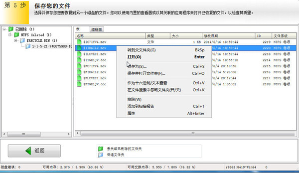 5、点击”继续”,进入扫描阶段,从扫描成功的文件中选择你想要恢复的文件,右击“另存为”即可保存。