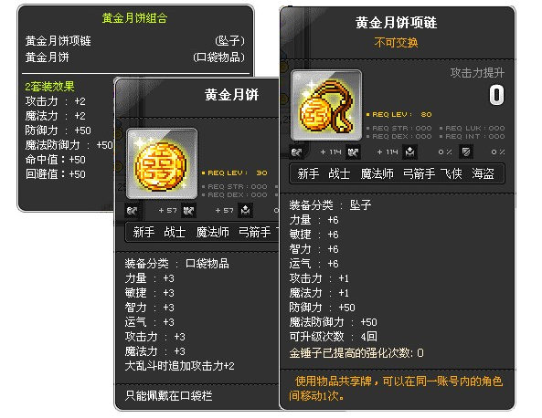 在这个中秋节怎么可以少了月饼呢?冒险岛中秋节转蛋机限时加入黄金月饼组合套装,黄金月饼组合、黄金月饼、黄金月饼项链,更有高级黄金月饼项链专属强化卷轴全新加入!
