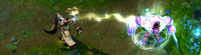 召唤神圣的力量,恢复友军150/250/350(+0.55 AP)点生命值。生命值低于40的友军可以享受到50%的治疗提升。