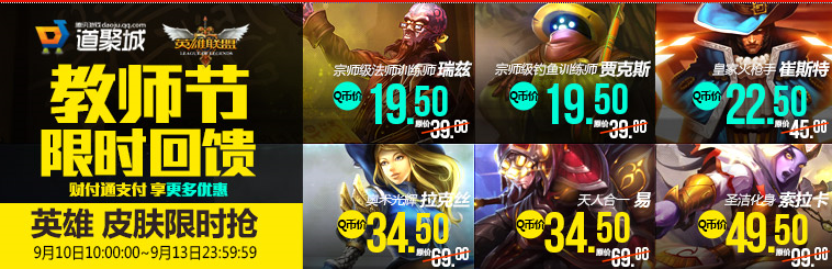 lol英雄联盟在9月10日教师节推出半价英雄皮肤了,lol9月10日教师节半价皮肤有哪些?下面就就和东坡小编一起来看看lol9月10日教师节半价英雄皮肤吧。