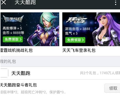 2、不要直接点击天天酷跑,而是点击“礼包”——“更多”,就可以看到所有游戏的礼包,包括天天酷跑奋斗者礼包了;