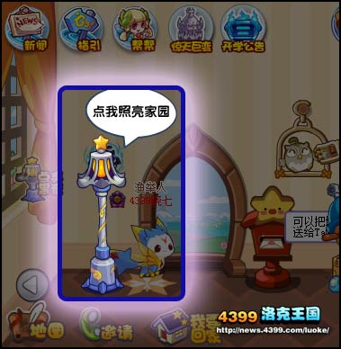 2、前往我的家园或好友的家园进行点灯,即可收获感谢信