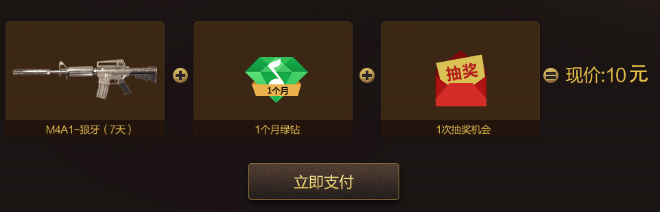 在本活动页面支付10元即可获得穿越火线超值道具,1个月绿钻,1次抽奖机会,多开多得!