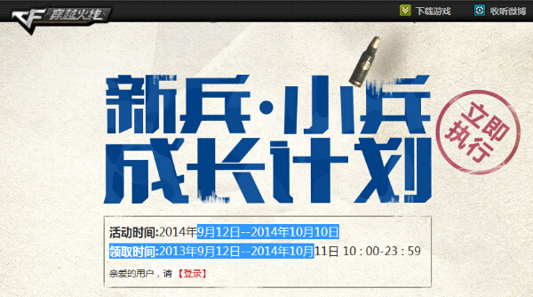 新的学期新的战场,CF新兵小兵成长计划火热进行,领取道具一同开启火线之旅!