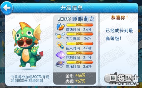 睡眼萌龙满级属性