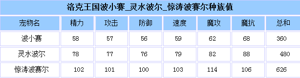 洛克王国波小赛_灵水波尔_惊涛波赛尔种族值
