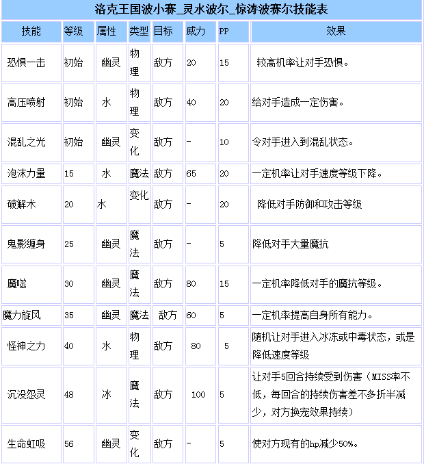 洛克王国波小赛_灵水波尔_惊涛波赛尔技能表