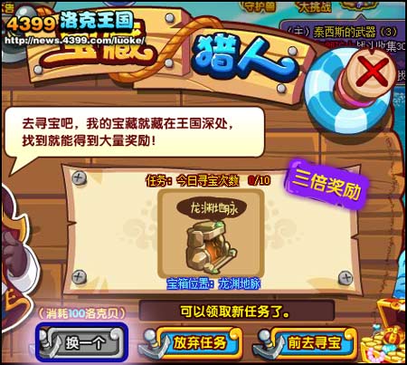 如果对任务经验不满意,可以点击换一个!一只刷到三倍经验,大约10W左右哦!
