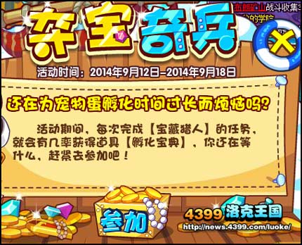 洛克王国夺宝奇兵活动时间:2014年9月12日-9月18日