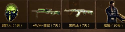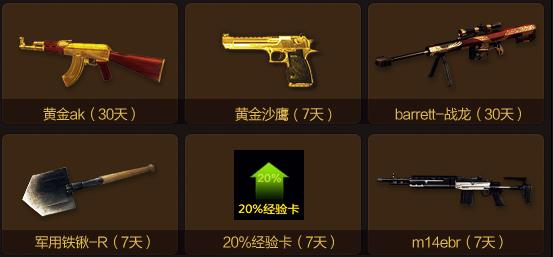 黄金ak、黄金沙鹰、barrett-战龙、军用铁锹-R、20%经验卡、m14ebr