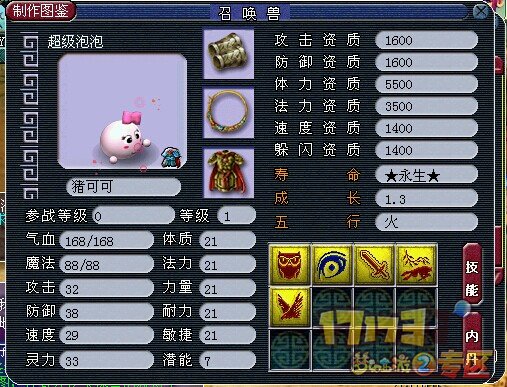 攻资:1600 防资:1600 法资:3500 体资:5500 速度:1400 成长1.3