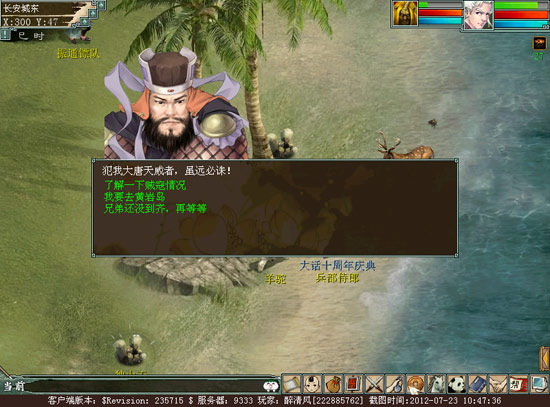 活动流程:活动期间到长安城东(303,43)找兵部侍郎乘战船到黄岩岛杀敌。