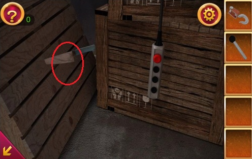 2、大家在第一张图看到正对面那个堆了四个木箱子的地方么?点击可以获得一把刀,这里还有一个开关。