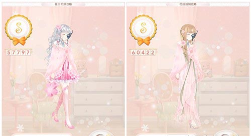 粉色樱花版:美丽的樱花和蔷薇花都非常适合在花田里拍照呢!而且和主题也非常搭,蔷薇套的得分直接突破6万大关,看来这一关的时装还是和花脱不开关系啊!