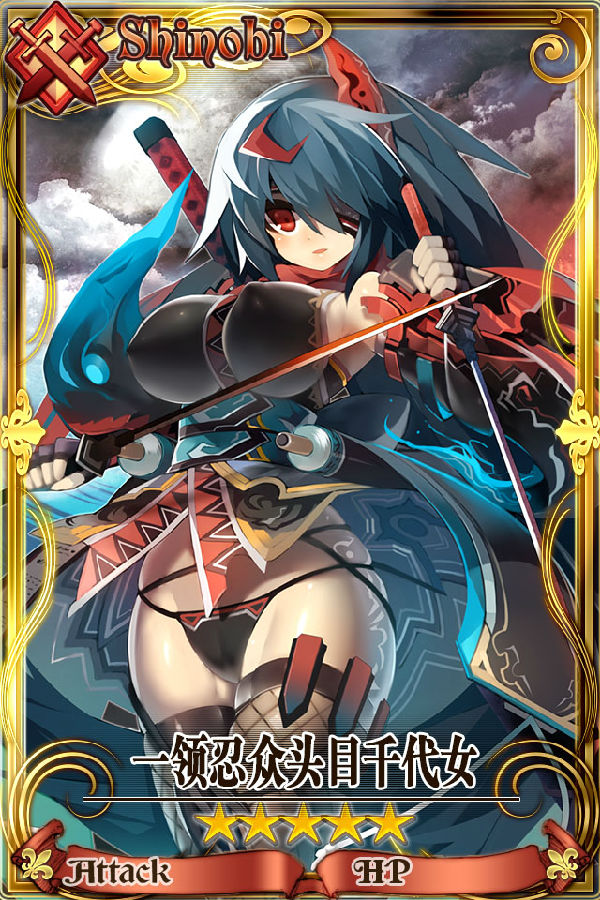 一领忍众头目千代女是服侍第一领主的忍者。是忍众的头目,不过,现在似乎带着某种密令离开故乡暗中行动着。