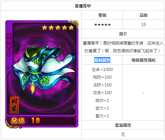 放开那三国塞鹰青甲时装属性一览