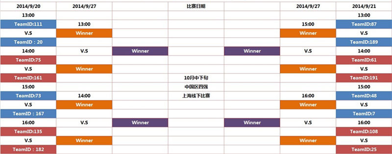 4强队伍可参加十月中下旬在上海举办的2014DWC中国区总决赛。