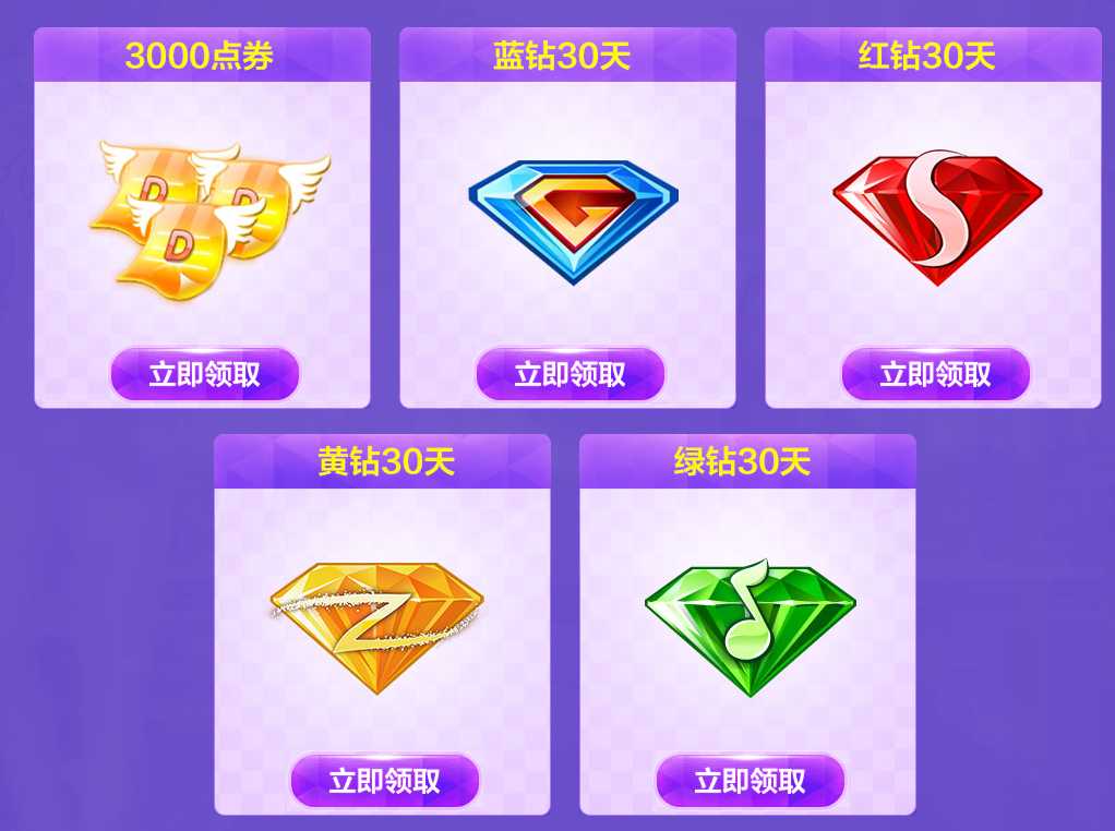 登录游戏即可获得以下特权大礼包(任选一个)!【Q钻限前5万人领取,点券不限量,先到先得。】