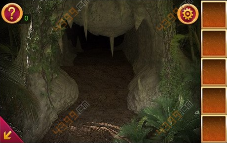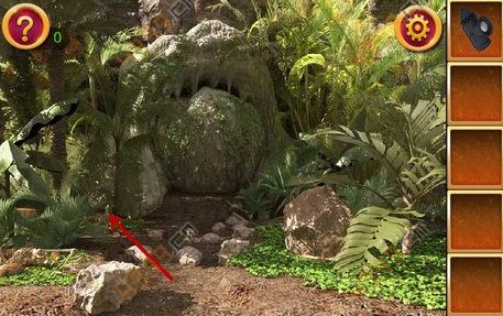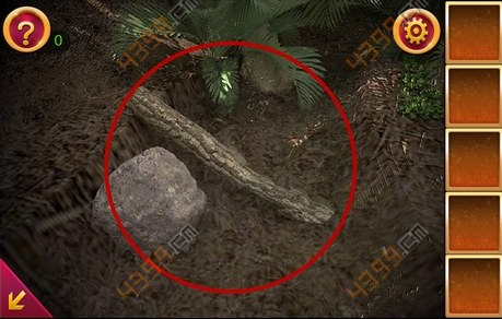 5.点击图中的大石头,利用木棍将其移开,把手电筒和电池组合在一起,照亮那个大洞,可以发现一个铜盘。