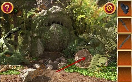 6.点击图中的大石头,用刀子在石头中间开个洞,把铜盘放上去。