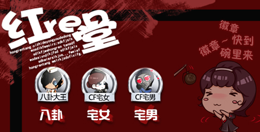 红人堂并且在红人堂连续获奖15次便可申请相和CF宅女、CF宅男勋章,要注意哦勋章需针对自己的性别,不可乱申请哒八卦男,八卦女,只要有人的地方就有八卦。八八真性情,八八乐趣多,八八游戏里的趣事,八八生活里的见闻八卦八卦,喜闻乐见,分享你所知道的,只要即日起在红人堂版块发帖获得版主收录精华20次,便可申请八卦大王勋章。