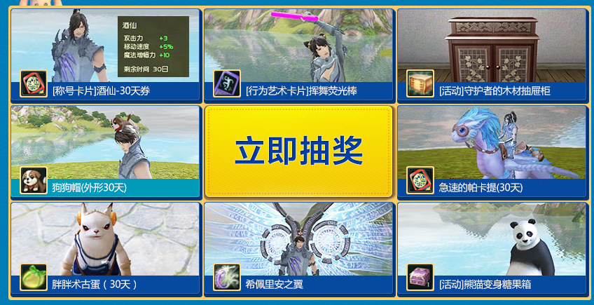 永恒之塔回归玩家活动全新大改版,回归玩家完成5大任务可以获得抽奖机会,100%中奖,称号酒仙、挥舞荧光棒。守护者的木材抽屉柜、狗狗帽等好礼等着大家,下面就来看看活动详情吧。